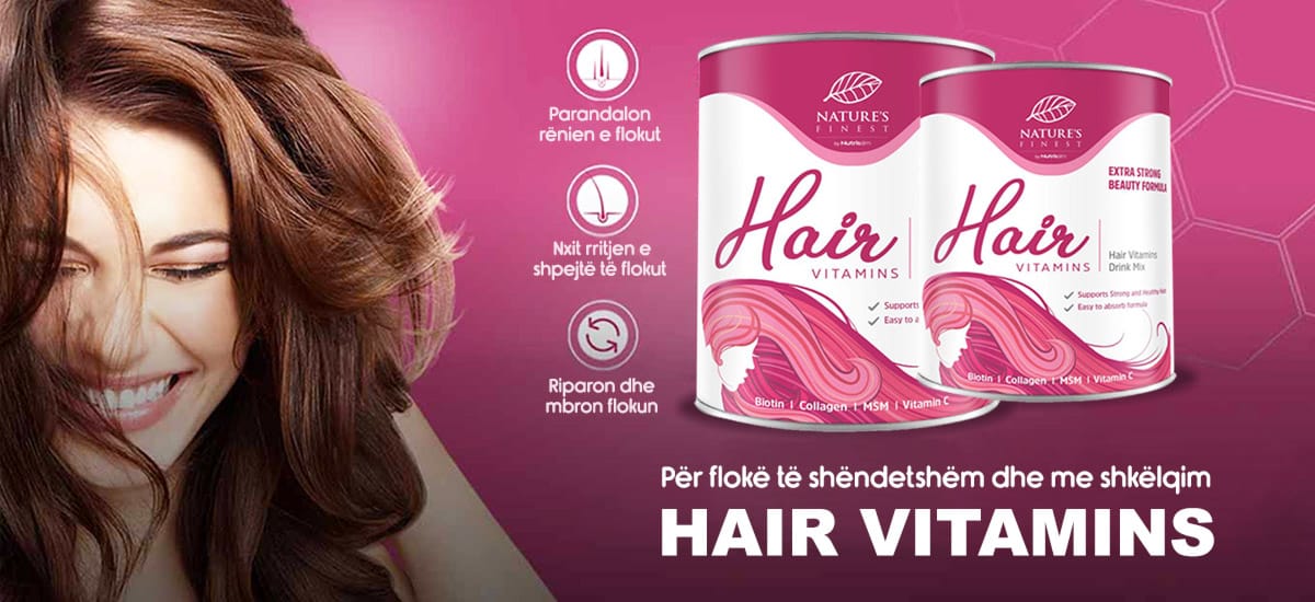 HAIR VITAMINS është një produkt tërësisht natyral që ka përbërësit më të rëndësishëm për flokë të bukur dhe të shëndetshëm. Alternativa më e mirë kundër rënies së flokut është Biotina, e cila është pjesë e vitaminave B-Kompleks, dhe quhet ndryshe B8. Është mikronutrienti më i rëndësishëm për shëndetin e flokëve. Kolagjeni është një proteinë që i jep flokut elasticitet, ndërsa vitamina C ndihmon në prodhimin e kolagjenit dhe vepron si një antioksidant shumë i fuqishëm që mbron flokët.